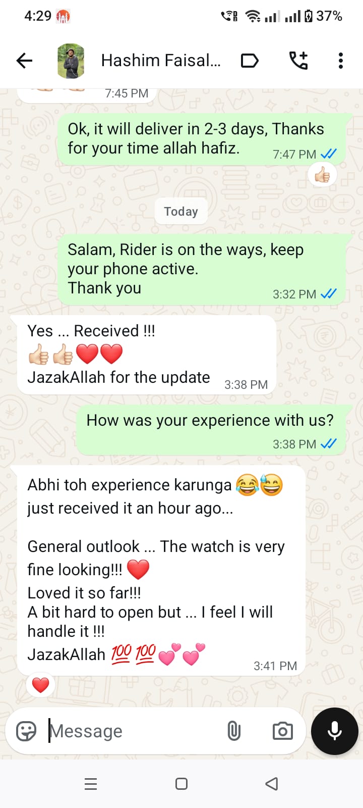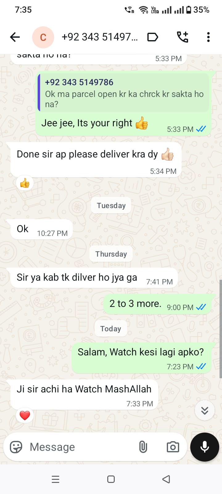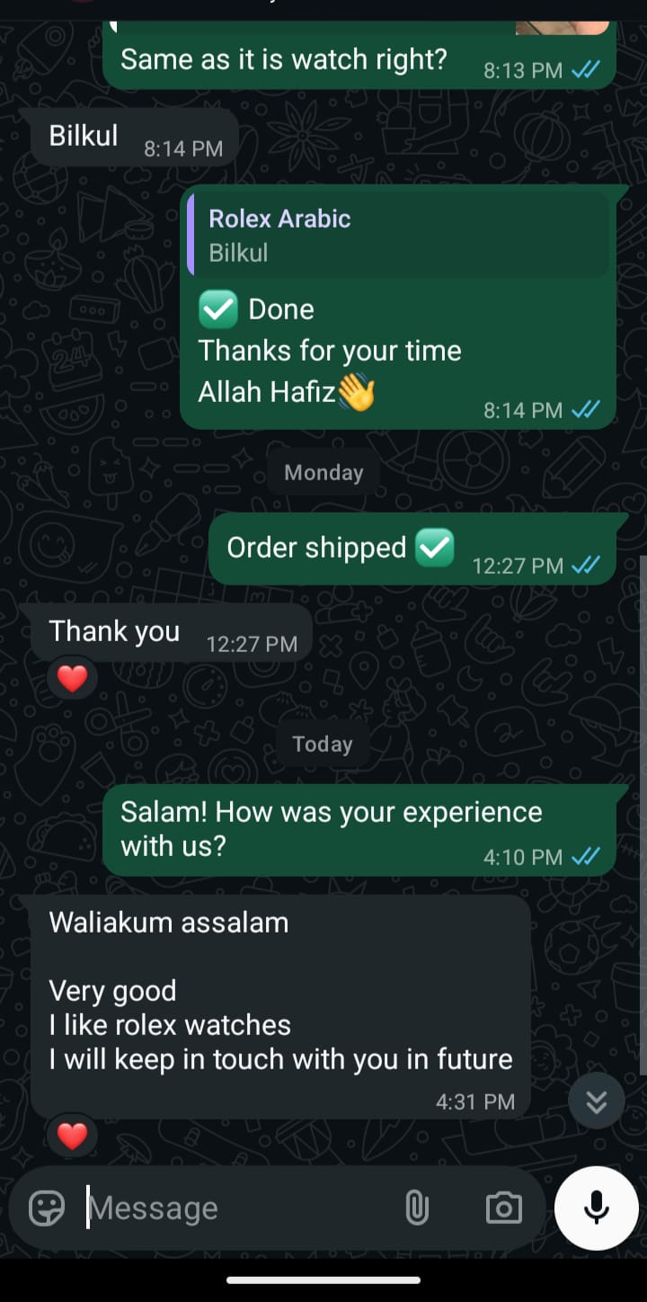 We offer a 7-Day Easy Return Policy if you receive a damaged or wrong item. Additionally, all our premium watches come with a machine warranty. Contact our WhatsApp support for any claims.